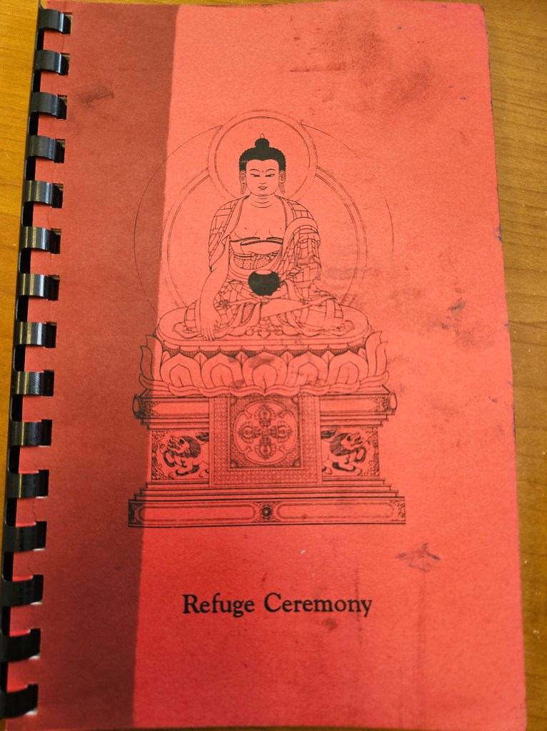 One day, Doug told me there would be a Tibetan monk visiting Tucson, giving Buddhist teachings and offering refuge. The teachings were offered at a local yoga studio. The place was packed. I went to the teachings, held over several days, and I saw Khenchen for the first time. (At the time, he was “Khenpo”) I watched him carefully and closely, and I realized that he had something. He knew something. He was the real thing. He was at peace. I wanted what he had. I wanted to know what he knew. I took Buddhist Refuge with him, and I fell in love with him. I asked to be his student, and he accepted me.