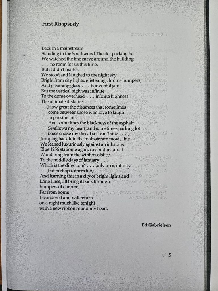Published in Litmus, a poetry journal from the Texas A&M English Department, spring 1988.